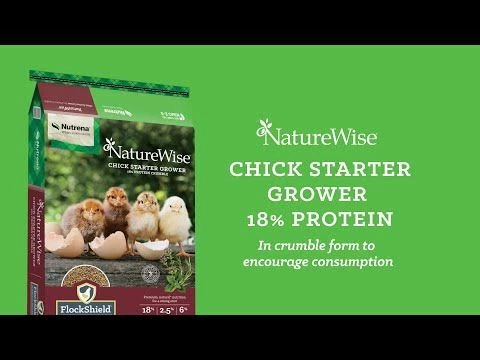 NatureWise 18% Chick Starter/Grower Non Medicated is formulated with 18% protein and no added antibiotics of hormones for natural, balanced nutrition to support strong and healthy chicks, in a crumb form.