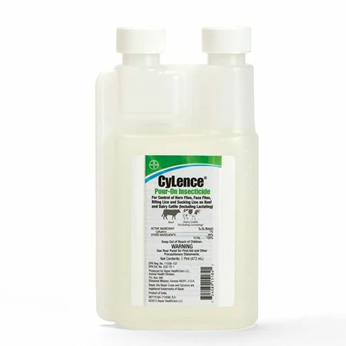 CyLence® Pour-On Insecticide works to control horn flies, face flies, biting lice and sucking lice on beef and dairy cattle (including lactating). This is a ready-to-use solution – no mixing required. It can be used any time of the year on cattle of any age or size. Apply required amount of product directly along the top of the back and top of the head of the animal.