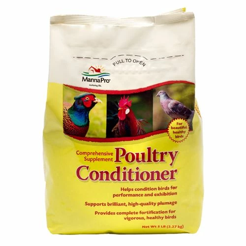 Poultry Conditioner is a comprehensive pelleted supplement that helps condition your poultry for ribbon winning success with performance & exhibition. Complete fortification for vigorous, healthy birds, and brilliant high-quality plumage. Outstanding ingredients! Calf-Manna®, an excellent source of protein and energy. Flaxseed meal concentrated energy with omega 3 fatty acids. Fish meal, high levels of quality protein and omega 3 fatty acids. Amino acids, provide the building blocks for muscle growth and development. Comprehensive mineral/vitamin nutrition, used by the body for soundness, structure, health and fitness. Chelated trace minerals more absorbable form of minerals. Digestive aids, helps improve feed utilization including maintaining feed intake during times of stress. Also contains yucca, kelp, and anise flavor. Store in a cool dry environment.