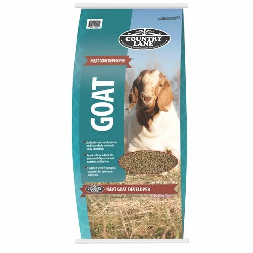 This Country Lane Meat Goat Developer feed is designed to be fed as the sole ration for young, developing and mature meat goats. Multiple protein sources for improved amino acid balance and utilization. Multiple sources of fat added to help maintain body condition. Alfalfa-based for high palatability. Yeast culture added to enhance feed consumption digestion and utilization. B-complex vitamin/thiamine fortified for optimum nutrition. Organic complexes of trace minerals for increased bioavailability.