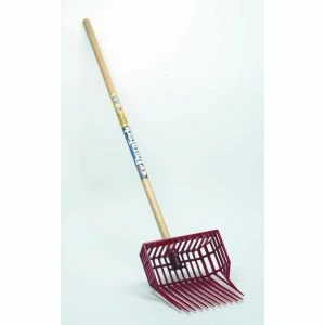 The Little Giant dura pitch 1 is manufactured from extra strong polycarbonate to provide strength and enhanced flexibility. Designed for long-lasting use around the farm, ranch and home. Specially designed tines are uniquely angled to provide easy manure pickup with less spilling. Nylon locknut secures handle. Basket design helps prevent manure from slipping off the fork. Smaller 42 inch handle makes it ideal for kids and small adults. Works great in confined spaces like horse trailers and small stalls. Forkhead is 12 1/4 long and 11 1/2 wide. Available in red.