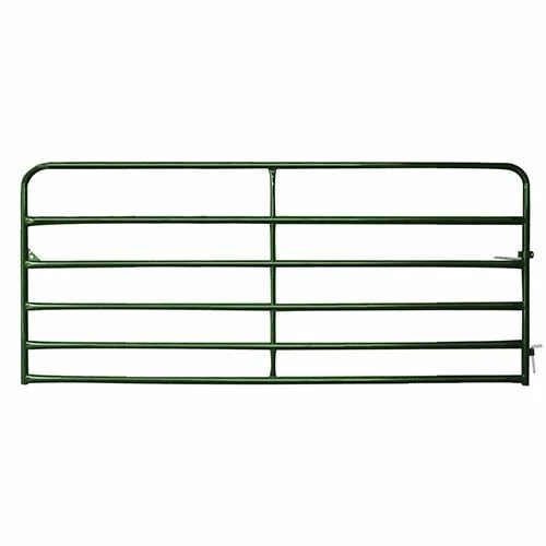 Priefert Ranch Equipment 1-5/8 In. Steel Tube Gate 10 Ft. Single piece stay through drilled rails. Attractive gate for driveways, pastures, or other non crowding applications. Traditional bed frame design for price conscious customers. Lag bolt post attachment, chain latch. Do not use in crowding situations.
